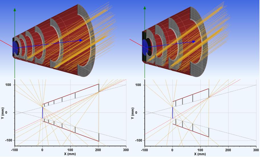 Front baffles are typically used in #space optical instruments to prevent out-of-field stray light from reaching the image plane. The design can be adapted to specifications quickly by changing parameters in RayJack ONE's scripting interface.