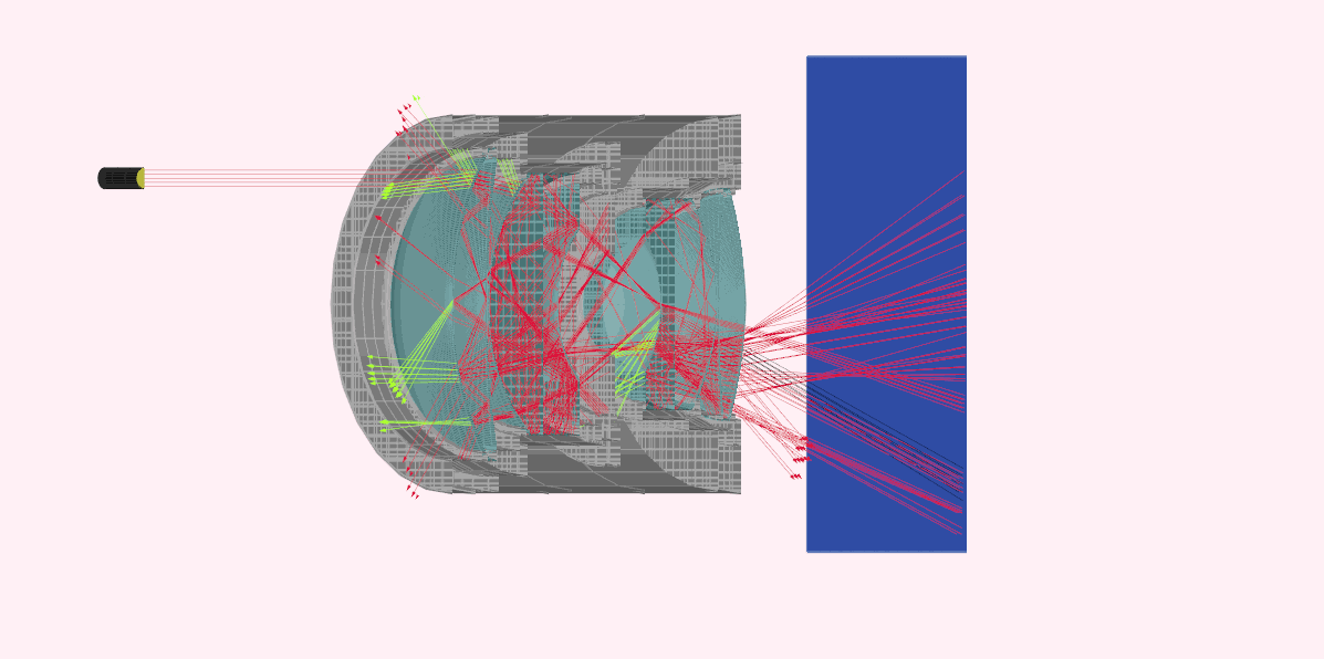 Our optical system analysis software RayJack ONE helps you understand ray paths intuitively through its animation feature. The example shows ghost light in a simple Double-Gauss lens..